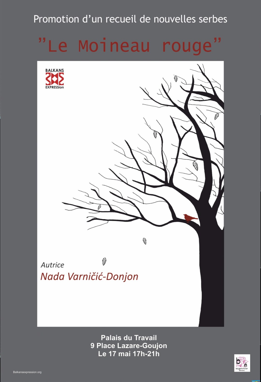 Avant de découvrir le Moineau rouge qui nous a réunis ce soir permettez-moi de remercier Balkans expression et Yasmina à qui nous devons l’initiative de cette soirée et qui en a assuré la préparation. Je veux aussi mentionner le précieux soutien trouvé auprès des services de la Maire de Villeurbanne qui ont mis cette salle à notre disposition. Il m’est ainsi possible d’avoir le grand plaisir de vous dire quelques mots sur un étonnant petit recueil de nouvelles et sur son auteure, mon épouse Nada Varnicic.