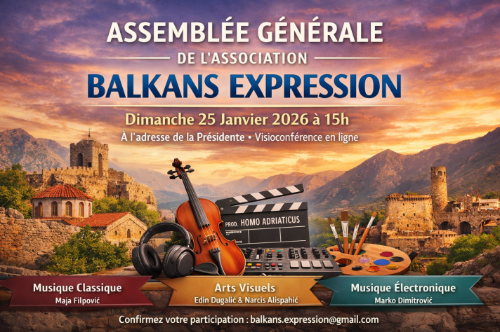Le Conseil d’administration de l’Association Balkans Expression a le plaisir de vous convoquer à notre Assemblée Générale qui se tiendra le :