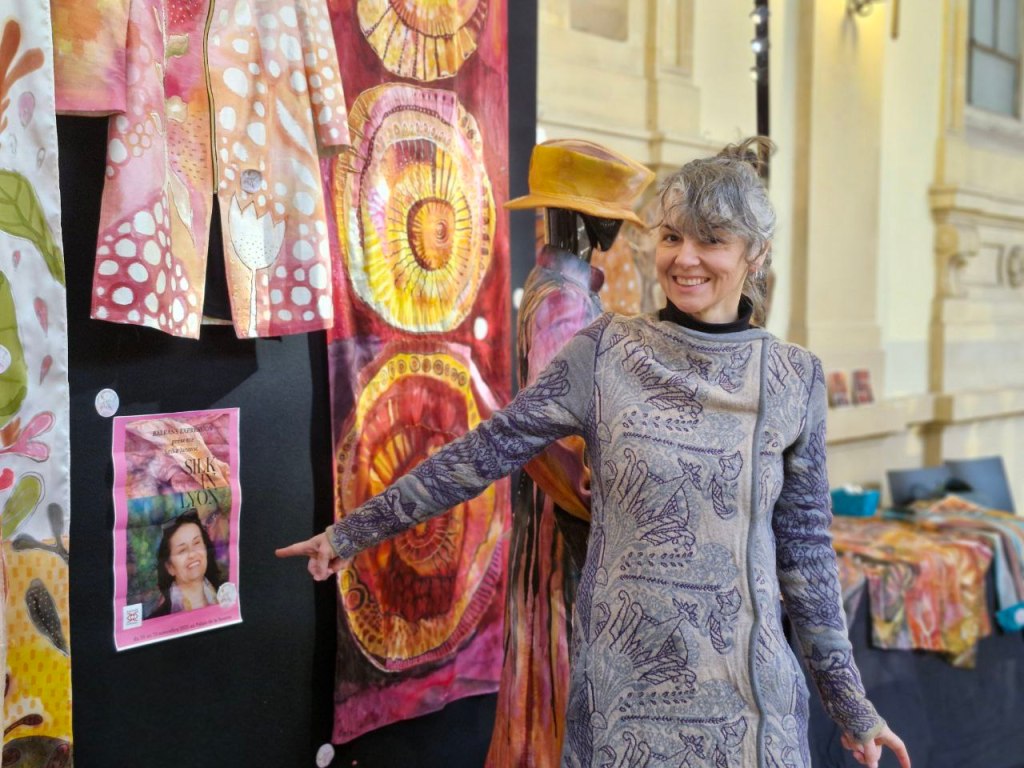 Pour l’édition 2025 du Silk in Lyon, l’association Balkans Expression a eu l’honneur de présenter le travail de l’artiste textile Erika Janović au cœur du Palais de la Bourse. Sous le titre « Empreinte de lumière », son univers artistique a captivé un public venu nombreux : cette année, le festival a accueilli 6 250 visiteurs.